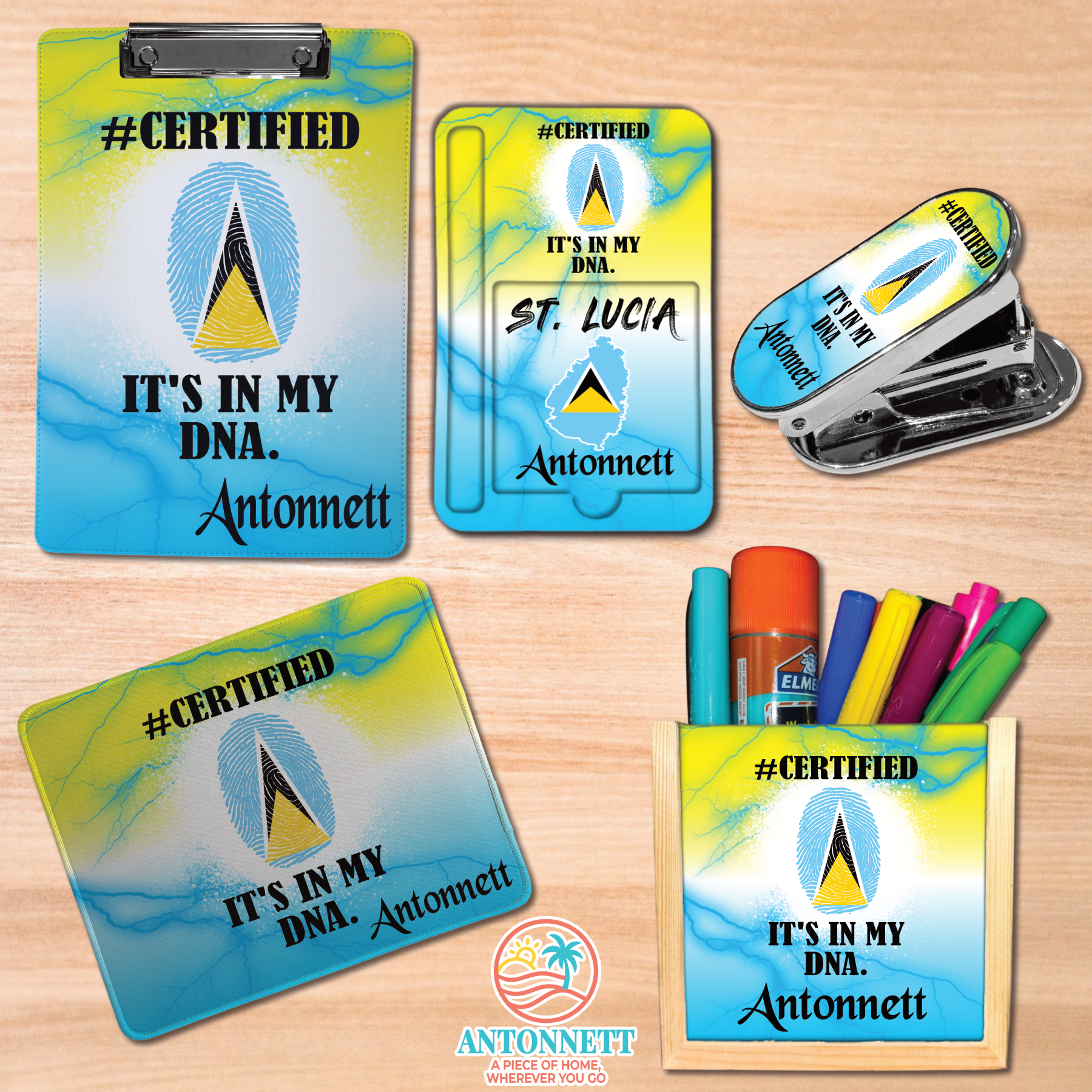 The default item is a mini stapler. When you choose to upgrade, you will be changing the mini stapler to another product. For example, if you want to purchase the mouse pad instead of the mni stapler, simply upgrade to that item. You can upgrade to the whole collection and receive all 5 items in the collection along with a FREE Antonnett tote bag.